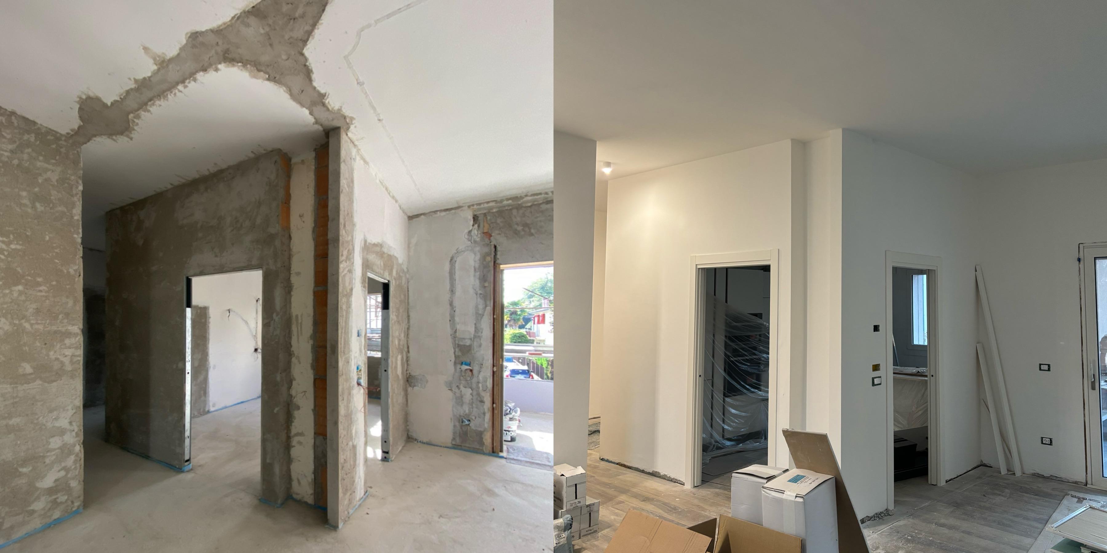 Confronto prima e dopo lisciatura a gesso